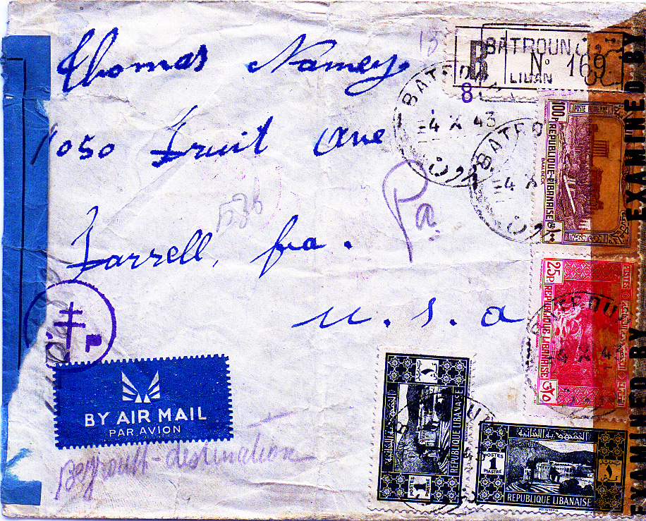 Registered Double Censored cover - Batroun - Beirut - Miami - Florida